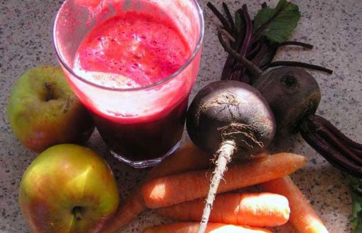 Spalati bine ingredientele si taiati-le cu tot cu coaja, in bucati mici. Adaugati bucatile intr-un extractor de suc si consumati sucul imediat. Puteti adauga zeama de lamaie sau limeta, dupa gust.