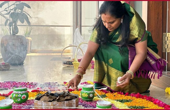 Decorarea casei. Dimineata, oamenii curata si impodobesc casele cu kolam (desene realizate pe podea din pulbere de orez colorata) la intrare, ca semn de bun augur. Intrarea este decorata si cu frunze de mango si flori proaspete.