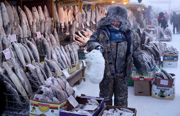 Probleme curente in Oimiakon. Nu frigul napraznic ii deranjeaza pe localnici, care s-au adaptat climei, ci anumite efecte ale acestuia. Spre exemplu, ochelarii se lipesc de fata la asemenea temperaturi. De asemenea, masinile trebuie lasate cu motorul pornit. Altfel, riscul e sa nu mai poata fi pornite. Exista si un avantaj: pestele de pe tarabe nu mai trebuie congelat.