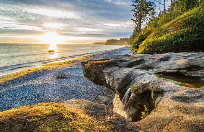 Sandcut Beach, Canada. O scurta plimbare prin padurea de cedri din Insula Vancouver te va duce la Sandcut Beach, unde, pe langa linistea naturii, te vei putea bucura si de o superba cascada.
