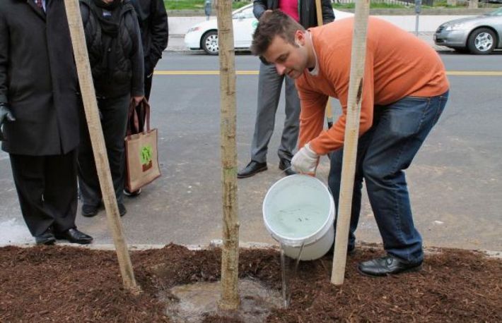 Uda copacul. Pastrarea umezelii la radacina va ajuta arborele sa supravietuiasca. Acest lucru devine foarte important in timpul verii. Uda copacul bine, o data pe saptamana, in primii doi ani.