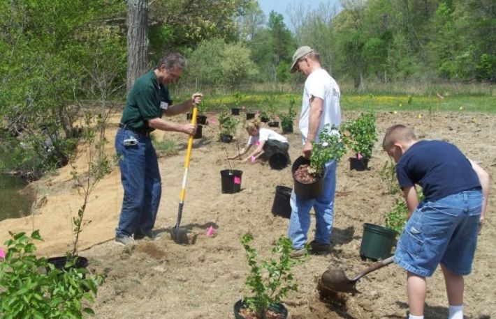Sapati o groapa in locul replantarii, cu un diametru dublu fata de marimea radacinii si cu 2,54 cm mai putin adanca decat radacina, pentru ca sacul de panza sa fie vizibil dupa replantarea pomului.