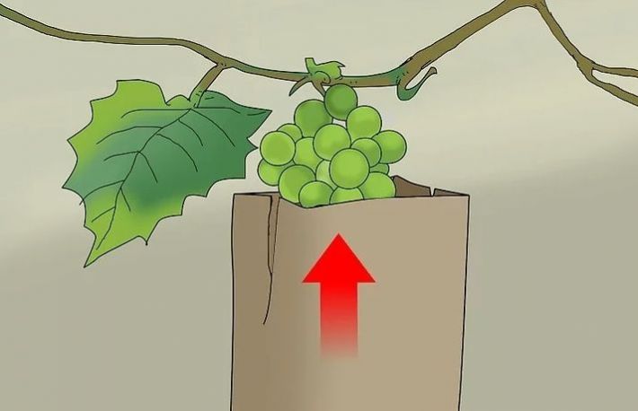 Rupe frunzele din apropierea ciorchinilor. Frunzele au nevoie de lumina directa a soarelui si se vor ofili, daca sunt lasate in sacul de hartie. Scapa, asadar, de frunzele din zona ciorchinilor. Strugurii pot fi afectati de acest procedeu, dar nu se vor usca. In cel mai rau caz, se vor dezvolta mai greu, adica vor ajunge la maturitate mai tarziu.