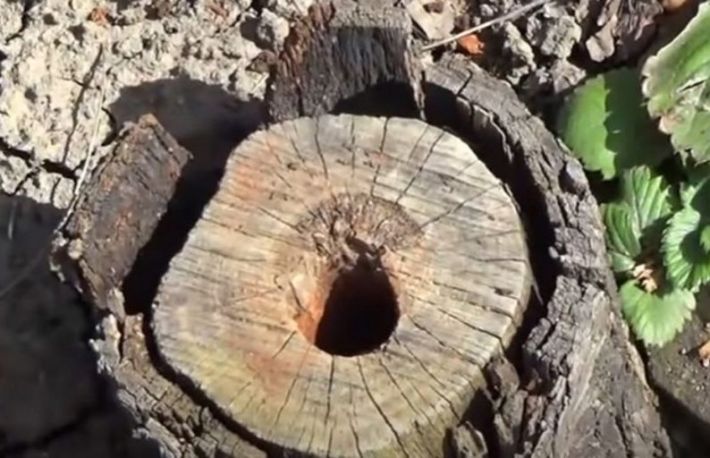 - fa doua gauri de circa 15 centimetri in buturuga(pe adancime). In cazul in care buturuga e uriasa, fa mai multe gauri;