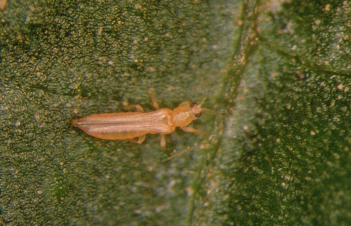 Daunatori la rosii. . Tripsul (Frankliniella occidentalis):